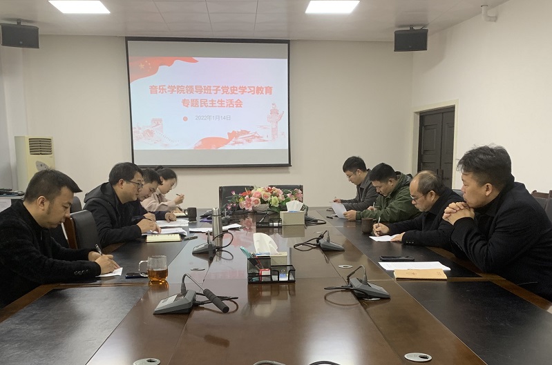 1月14日,音乐学院在音乐楼B209会议室召开学院领导班子党史学习教育专题民主生活会,学院全体班子成员参加会议,学院组织员、学生党支部书记列席会议。