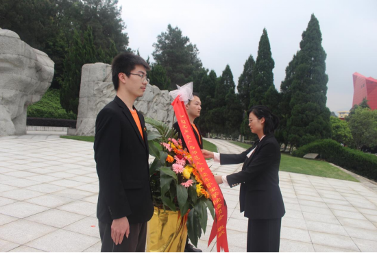 在烈士纪念碑园,全体党员、积极分子向烈士纪念碑敬献花篮,学院党委相关负责人整理挽联,全体师生党员、积极分子肃立,向长眠于此的红军烈士深情默哀。学院党委相关负责人带领全体党员重温入党誓词,号召青年党员要牢记入党初心,坚定理想信念,继承和弘扬革命精神,走好新时代的长征路。