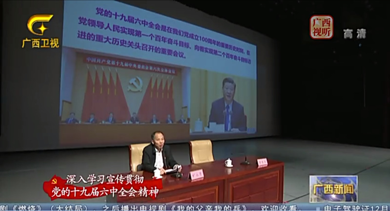 12月2日,广西卫视《广西新闻》、广西日报-广西云客户端以《学习贯彻党的十九届六中全会精神广西壮族自治区宣讲团到广西警察学院、防城港、玉林宣讲》为题,关注报道我校党委副书记、广西壮族自治区党委党史学习教育第十巡回指导组组长旷永青到玉林市作宣讲报告。