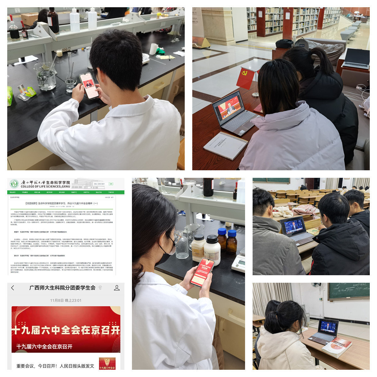 党的十九届六中全会是在党成立100周年之际,党领导人民实现第一个百年奋斗目标、向着实现第二个百年奋斗目标迈进的重大历史关头召开的一次极为重要的会议。自全会召开以来,生命科学学院团委在学院党委的领导下,在上级团委的指导下,通过学生骨干推进发力、团员学习有力、创新形式助力全面开展全会精神学习,持续掀起学习热潮。