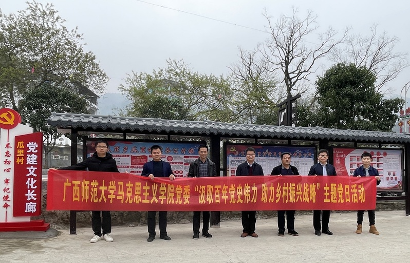 为深入学习贯彻党的十九届六中全会精神和自治区第十二次党代会精神,持续推动党史学习教育不断走深走实,以党建引领助力乡村振兴。12月16日,马克思主义学院党委深入资源县瓜里乡瓜里村、车田乡黄宝村、河口乡猴背村开展“汲取百年党史伟力助力乡村振兴战略”主题党日活动。学院党委班子部分成员、专任教师代表、全体专职辅导员参加活动。