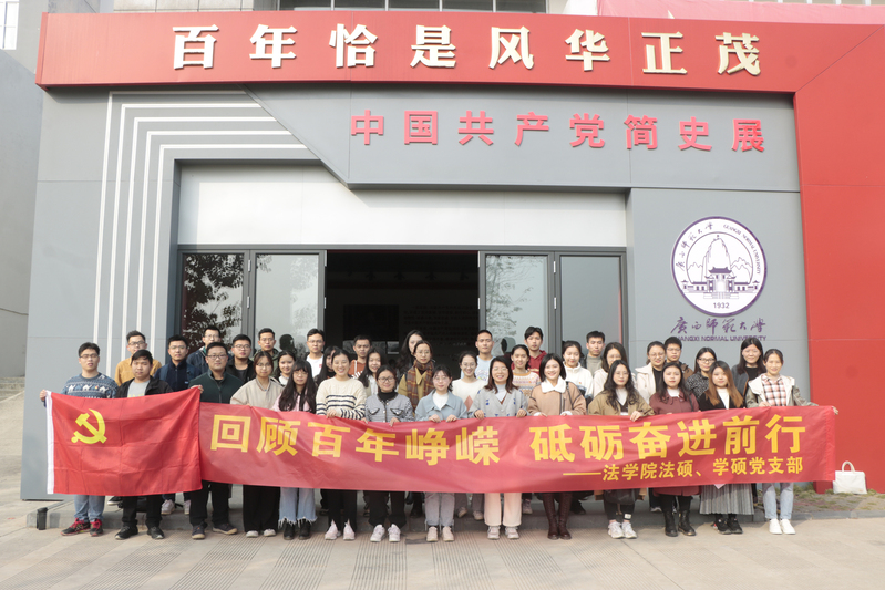 为深入贯彻落实党的十九届六中全会精神,增强研究生党员对党的百年奋斗历史成就和历史经验总结的感悟,12月16日,法学院法学专业研究生党支部和法律硕士党支部组织全体党员参观了雁山校区纯道楼的中国共产党简史展。