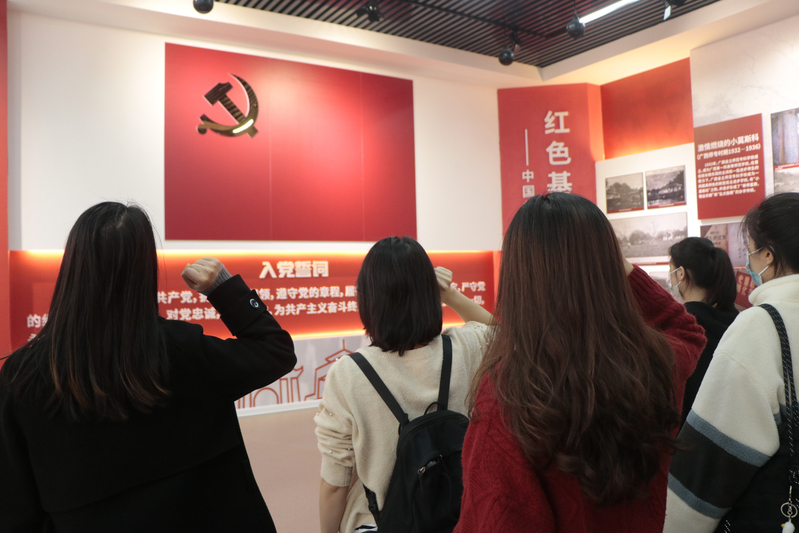 参观最后,全体师生在党旗下重温入党誓词,再次以有力的誓言铸牢共产党员的初心和使命。