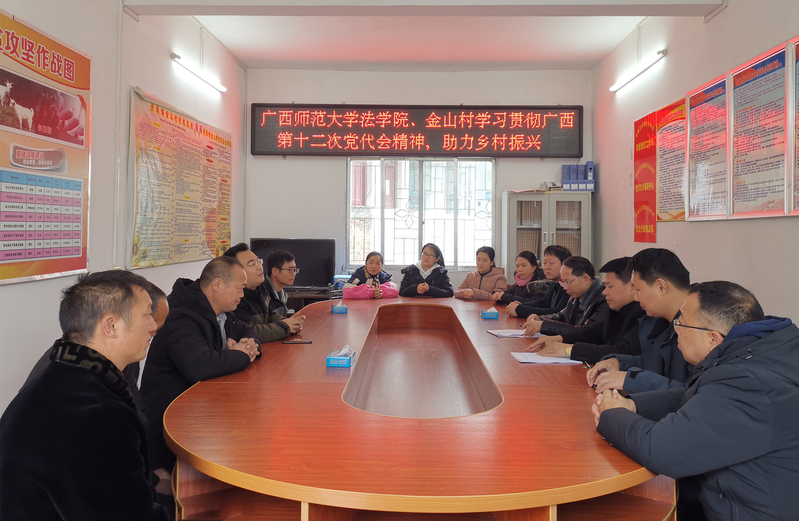 12月13日上午,法学院来到资源县金山村村委会议室召开专题学习会,学习贯彻自治区第十二次党代会精神,助力乡村振兴。学院党政领导班子、工会主席、行政人员、党支部书记以及金山村第一书记及村委参加本次活动。