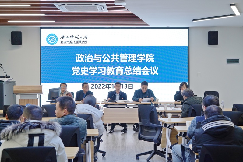 1月13日,政管学院在育才校区文二楼717召开党史学习教育总结会议,学习传达习近平总书记重要讲话和重要指示精神以及中央、自治区党委、自治区教育系统、广西师范大学党史学习教育总结会议精神,回顾总结一年来学院党史学习教育开展情况,部署巩固深化学习教育成果后续工作。学院党政领导班子、全体教职工参加会议,会议由学院党委主要负责人主持。