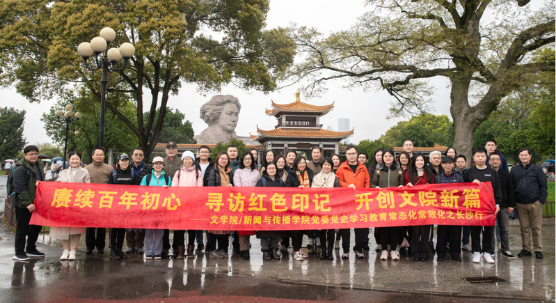 为推动学院党史学习教育常态化长效化,3月24日至26日,文学院/新闻与传播学院党委组织党员40余人赴湖南省长沙市开展“赓续百年初心 寻访红色印记 开创文院新篇”党史学习教育,追随红色足迹,重温红色初心,坚定理想信念,踔厉奋发、笃行不怠,不断汲取前行力量。