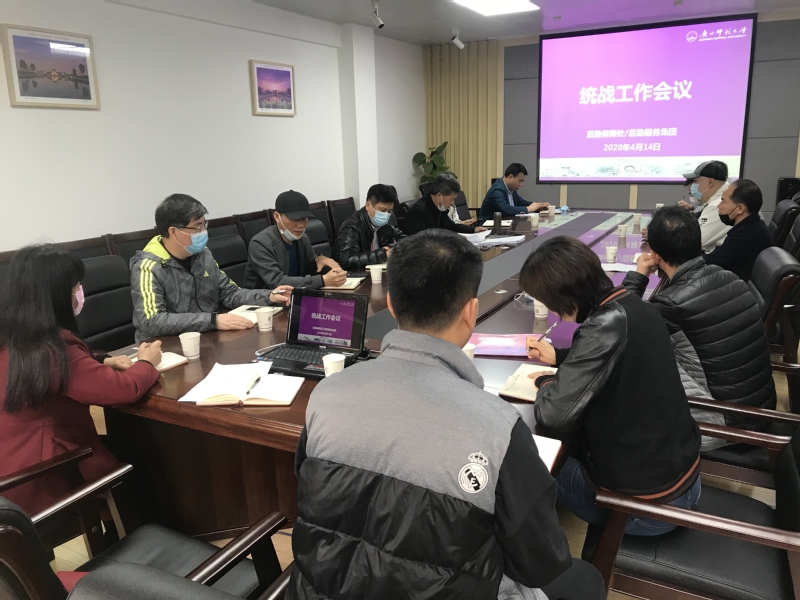 2020年4月14日上午,后勤保障处/后勤服务集团在雁山校区后勤201会议室召开2020年统战工作会议,后勤领导班子、两委委员、支部正副书记参会。会议由党委书记蒋业权主持。