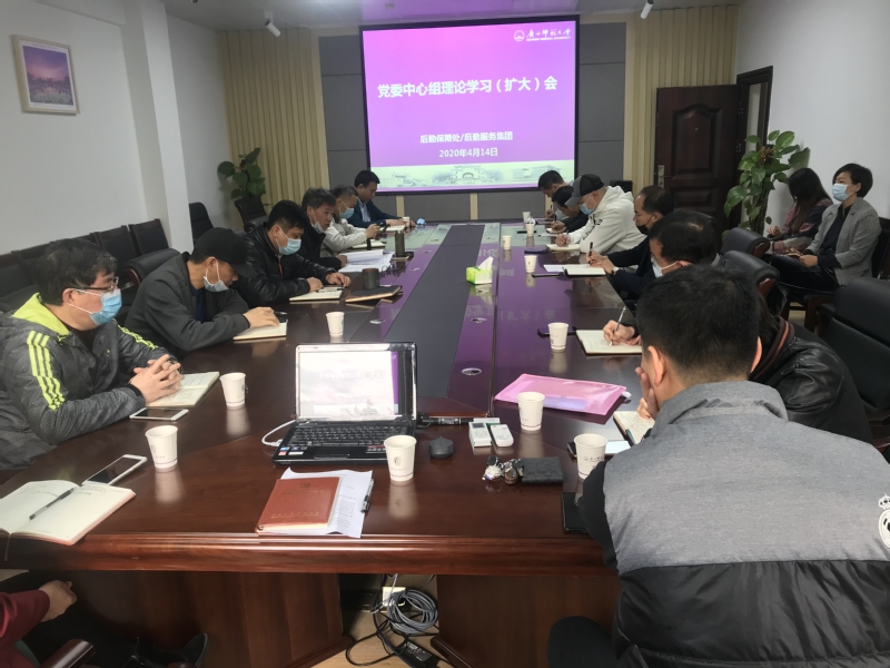2020年414日上午,后勤保障处/后勤服务集团雁山校区201会议室召开后勤党委中心组理论学习扩大会后勤领导班子、两委委员、支部正副书记参会。会议由党委书记蒋业权主持。