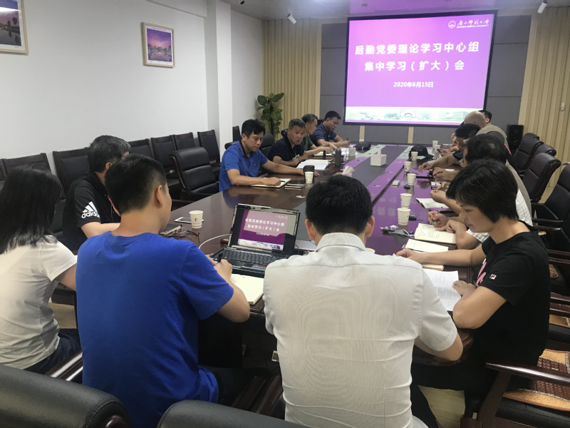 2020年6月15日上午,后勤保障处/后勤服务集团在雁山校区201会议室召开后勤党委理论学习中心组集中学习(扩大)会,后勤领导班子、两委委员、支部书记及各部门负责人参会。