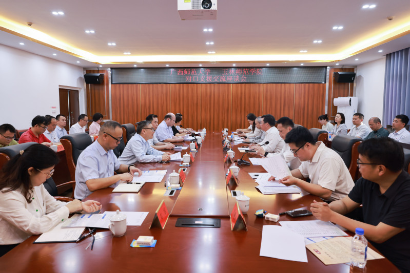 为进一步落实《广西师范大学 玉林师范学院对口支援框架协议书》,推动我校与玉林师范学院的交流与合作,4月28日,校党委书记贺祖斌,校党委常委、副校长林国庆、李先贤率领党办、学工部、发规处、科技处、社科处、教务处、校友办、高师中心、继续教育学院、创新创业学院/成果转化中心、教师教育学院等部门主要负责人一行赴玉林师范学院开展对口支援交流活动并进行了座谈。玉林师范学院校长李伟中,副校长黄映然、刘永建、庞国萍出席了座谈会,玉林师范学院相关职能部门负责人参加了会议。
