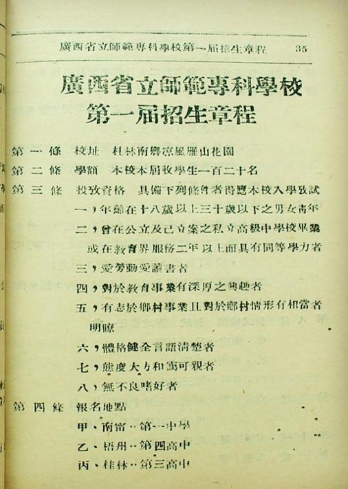 这是民国成立后广西第一所高等师范学校。最初计划校址设在当时的省府南宁邕江畔,以1929年停办的广西省立工程专门学校旧址为基础。1932年3月,已修建校舍四座。但唐现之念念不忘的是办一所类似陶行知所办“晓庄模式”那样的师范院校,对校址设在南宁市区不甚满意。后经省政府委员会决议,广西师专于7月迁至桂林南郊僻静的西林公园,并添建宿舍及教室。